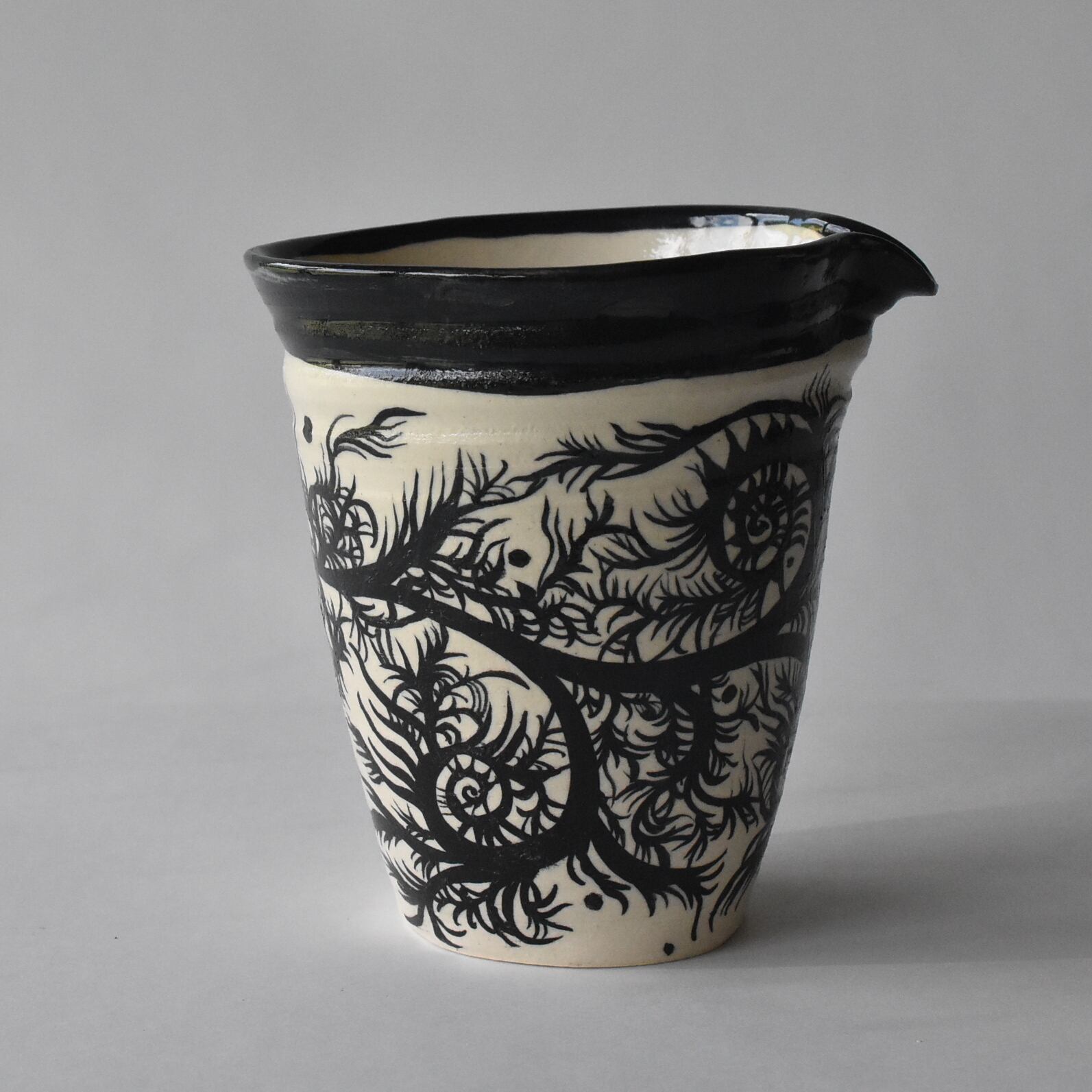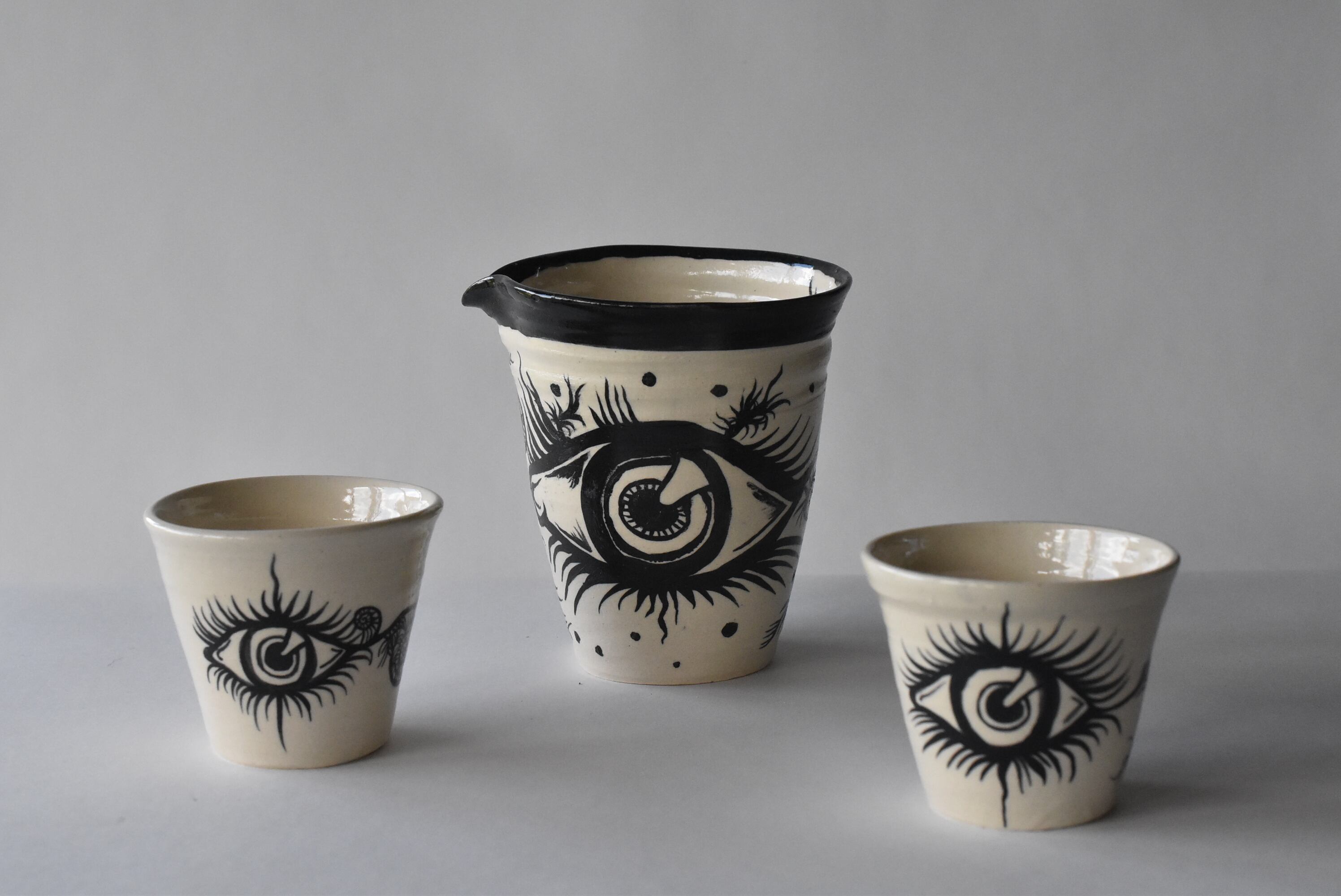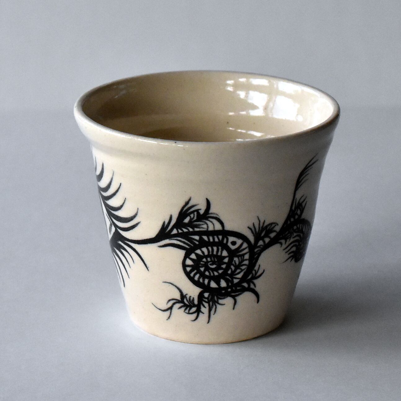 ”妙なる森final”のために、佐藤ゆきが器体を制作し、ペン画作家のミズタニカエコ氏が絵付けした、限定コラボレーション酒器シリーズ。